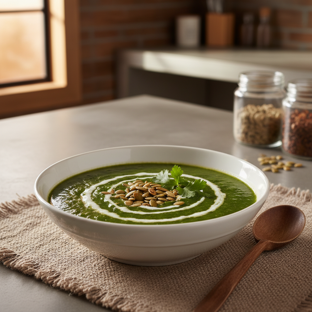 • Optional garnishes: toasted pumpkin seeds, fresh cilantro, chili oil