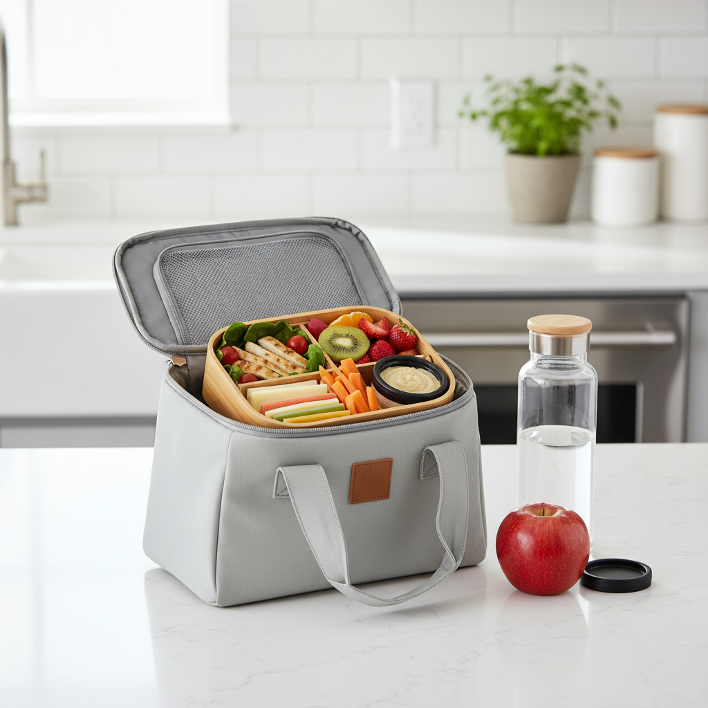 Leak-proof, stackable, microwave-safe containers (glass or BPA-free plastic) are worth the investment. Bento boxes with separate compartments are excellent.