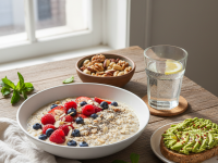 - Oatmeal with Protein Powder, Chia Seeds, and Cinnamon: Cooked oats (complex carbs, fiber) mixed with a scoop of your favorite protein powder for an extra protein boost, topped with chia seeds and a dash of metabolism-friendly cinnamon.