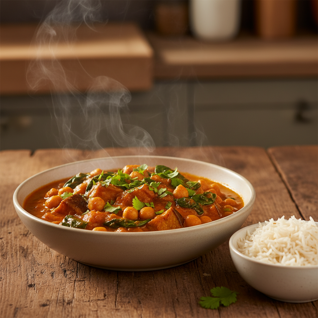 Your Step-by-Step Guide: Plant-Based Chickpea & Roasted Aubergine Curry with Spinach