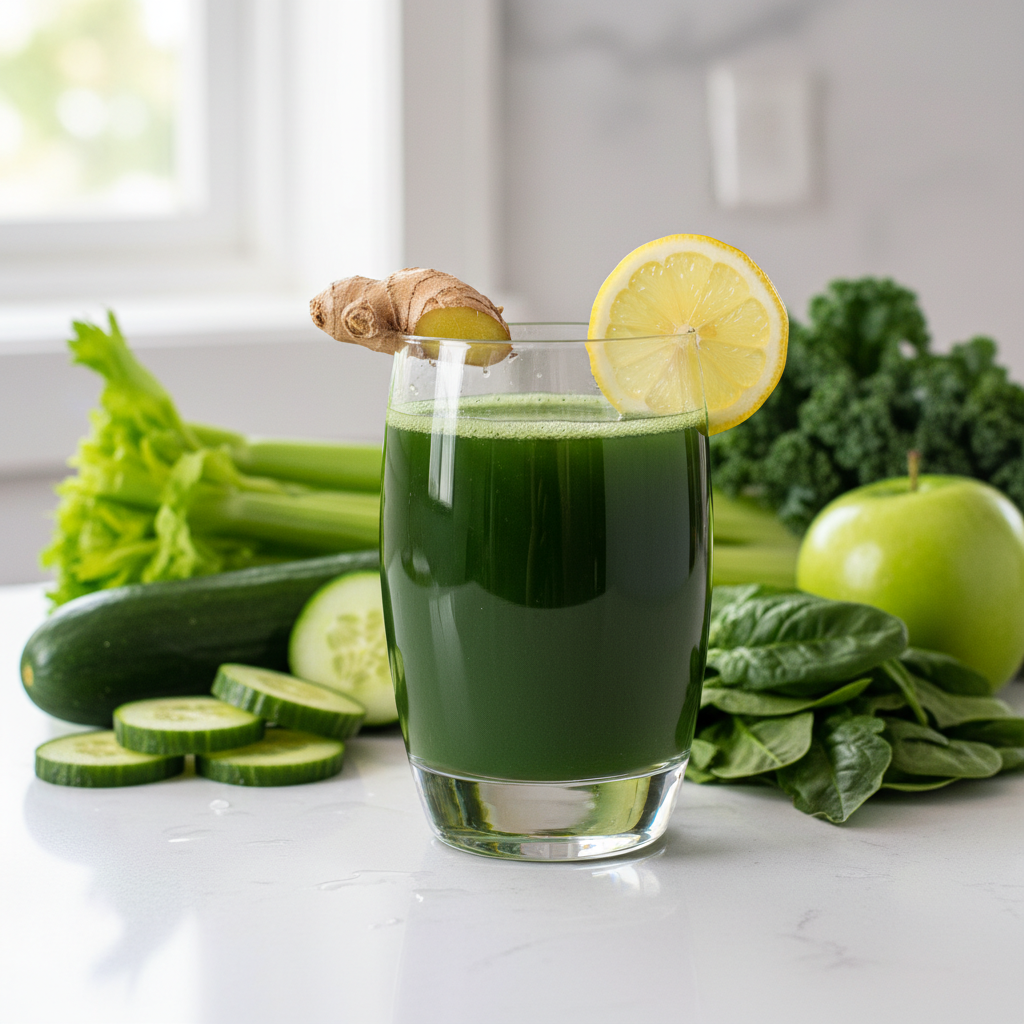 - Green Apple: Adds natural sweetness to balance the greens, contains malic acid (a gentle exfoliant), and provides antioxidants.