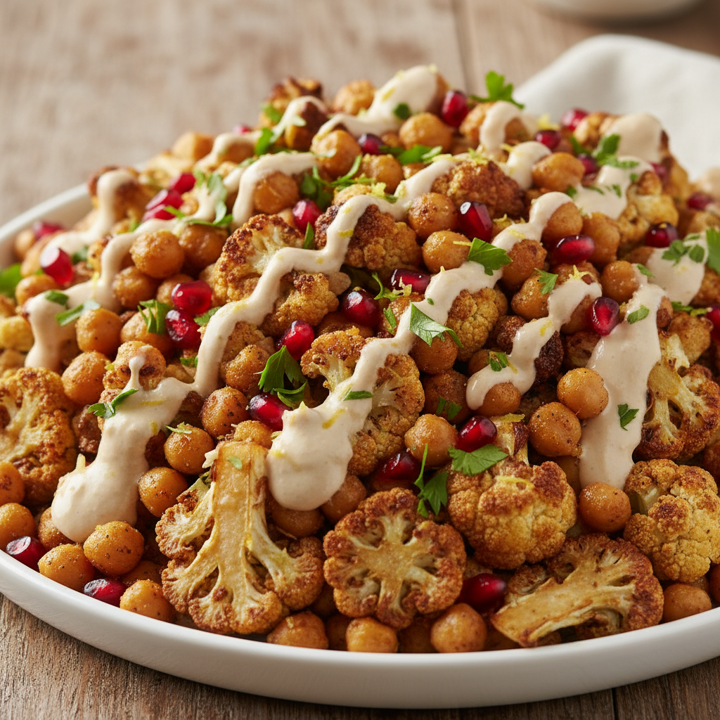 Imagine perfectly roasted cauliflower florets, their edges kissed with a golden char, offering a sweet, slightly smoky depth. Pair that with chickpeas, oven-baked to a delightful crispness, providing a satisfying crunch and earthy counterpoint. Then, bring in the magic of a creamy, zesty tahini dressing, which envelops every component, tying the entire dish together with its distinctive nutty, savory, and bright profile. Add a scattering of fresh herbs, perhaps some juicy pomegranate seeds, and you have a texture and flavor explosion in every bite.